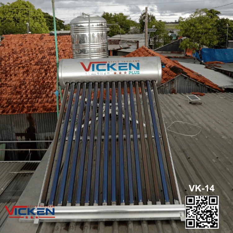 - Tên sản phẩm: Máy nước nóng NLMT VICKEN PLUS – Ruột bồn Inox SUS 316 140L